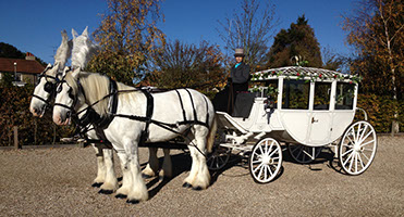 White Horse Farm Carriages specialists in the rare white shire horses, renowned for their patience and gentleness.